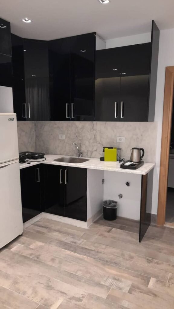 The Kitchen in the Marina 5, expertly crafted by T-Square Interiors, showcases a stunning blend of elegance and functionality. This space embodies simplicity in design while integrating a diverse array of finishing materials, including exquisite marble countertops, stylish cabinetry, and intricate mosaic tile backsplashes. The uniform paint enhances the spaciousness, creating an inviting atmosphere that radiates warmth and sophistication, making it the perfect setting for culinary creativity and entertaining guests.