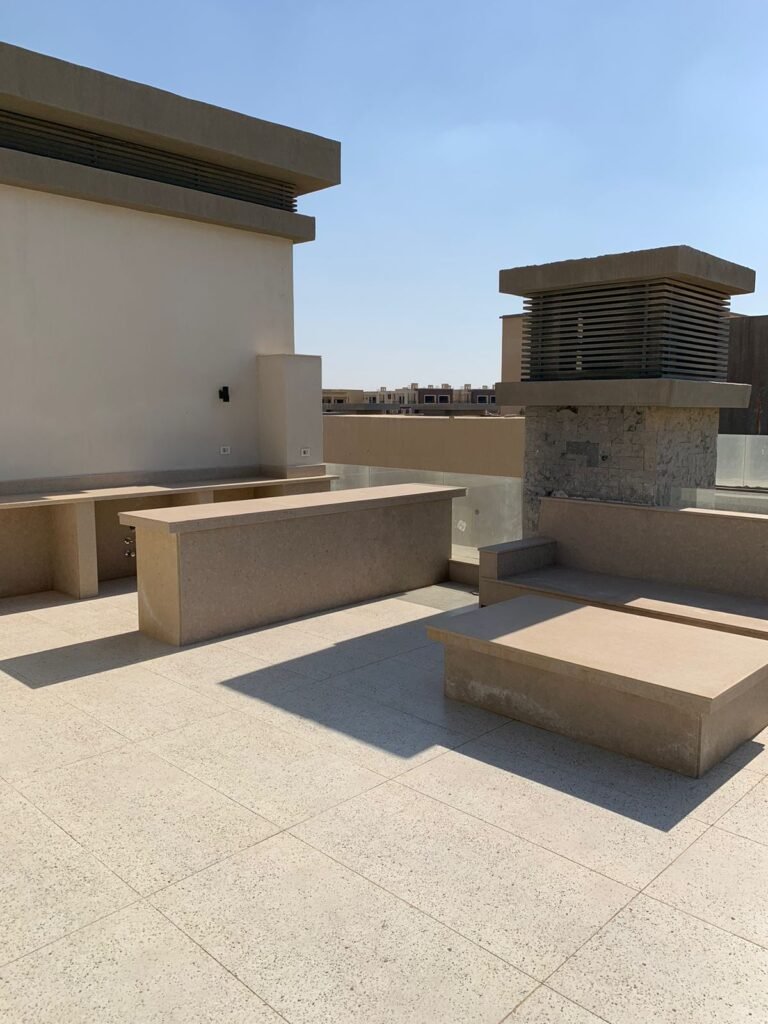 **T-Square Interiors**, a leading expert in both interior and outdoor design, recently completed an exceptional rooftop terrace project in New Giza. The space combines modern elegance with functional design, featuring sleek furnishings, premium materials, and stunning landscaping that complements the surrounding views. Designed for comfort and style, this rooftop terrace offers an inviting atmosphere for relaxation and social gatherings, showcasing **T-Square Interiors’** signature attention to detail and sophisticated aesthetic.